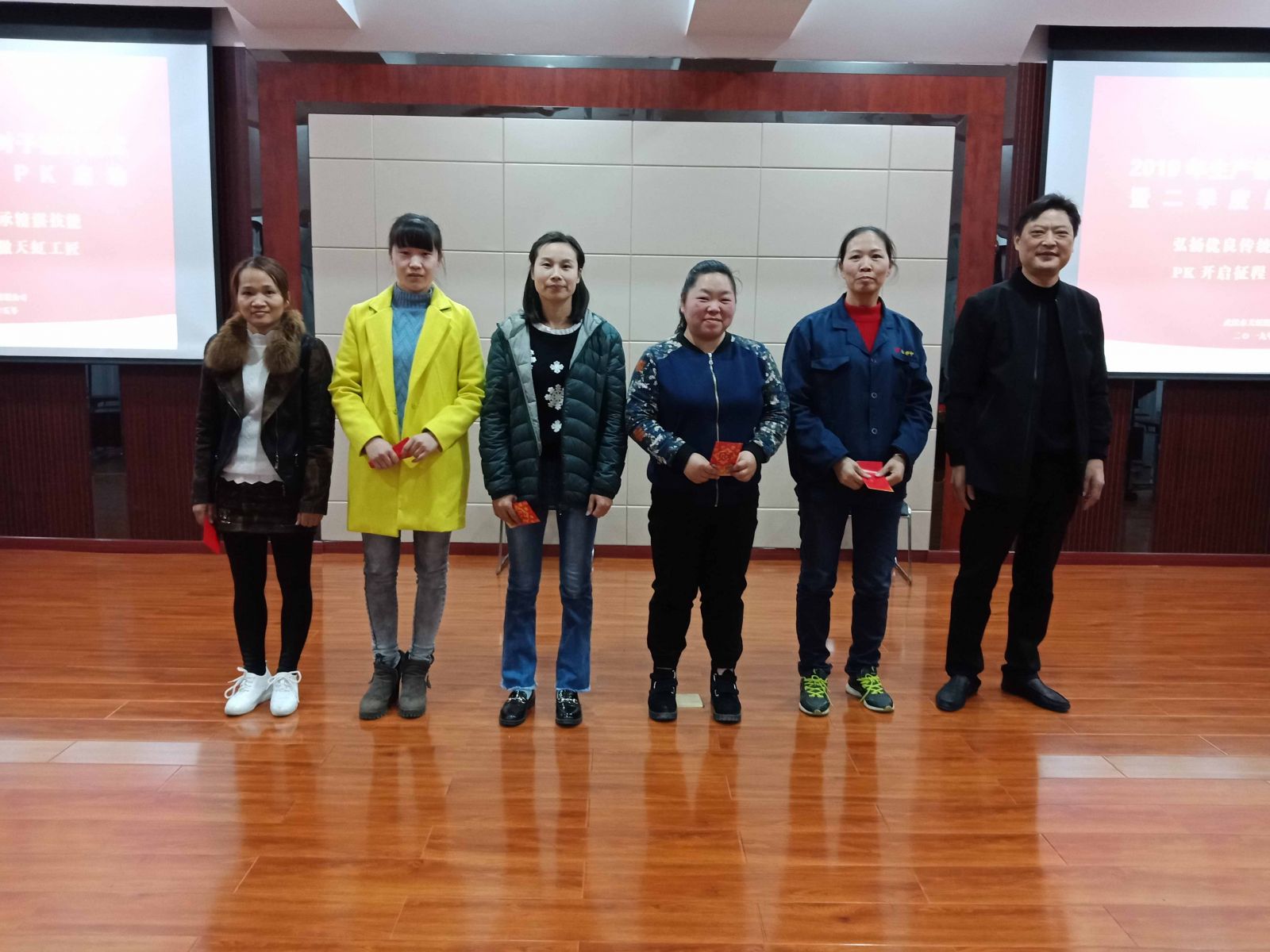 拜師的香茶仍溫,莊嚴(yán)的承諾余音繞梁,主持人緊接著又宣布2018年第四季度員工PK兌現(xiàn)和2019年第二季度員工PK啟動。員工PK是自2018年第四季度開始舉辦,旨在將產(chǎn)品品質(zhì)、產(chǎn)出率、節(jié)能降耗等生產(chǎn)目標(biāo)通過員工間、班組間進(jìn)行PK的形式進(jìn)行提升和達(dá)成。