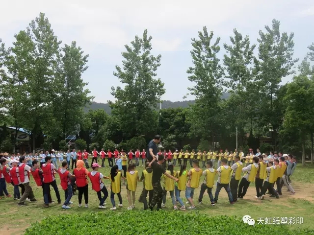 激情五月,挑戰(zhàn)自我,5月14日,天虹彩印公司組織員工進(jìn)行了團(tuán)建拓展活動?;顒釉陲L(fēng)景秀麗的九真山風(fēng)景區(qū)拉開序幕,在教練的帶領(lǐng)下,所有團(tuán)隊(duì)成員開展了破冰分組、動感擊球、團(tuán)隊(duì)圣塔、動力圈繩四個拓展項(xiàng)目。