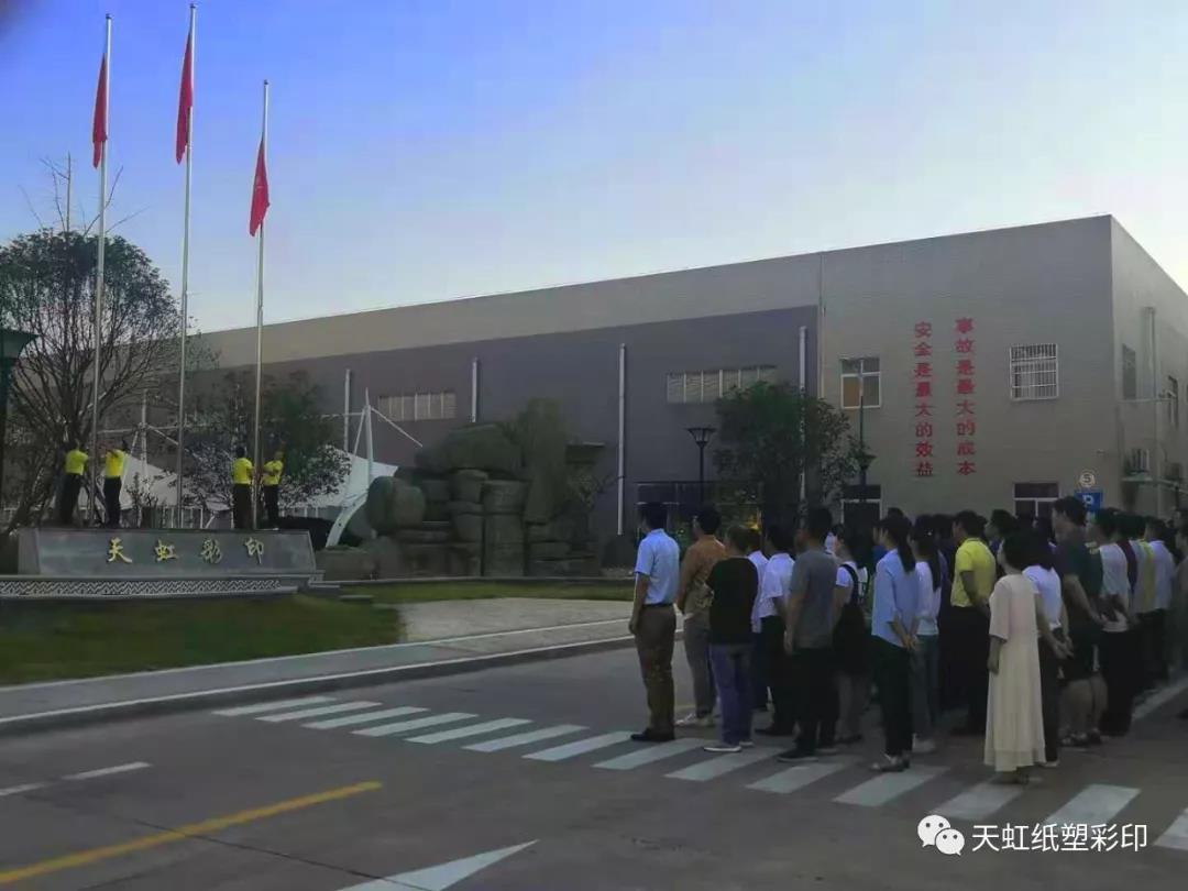 金秋十月,普天同慶。9月30日,在國(guó)慶節(jié)到來(lái)之際,武漢市天虹紙塑彩印有限公司隆重舉行升旗儀式,慶祝新中國(guó)成立70周年。上午7時(shí)30分,伴隨著莊嚴(yán)的國(guó)歌聲,鮮艷的五星紅旗冉冉升起,迎風(fēng)飄揚(yáng)。天虹員工精神抖擻,莊嚴(yán)肅立,面向國(guó)旗行注目禮,向偉大祖國(guó)致以崇高敬意和美好祝福,公司員工代表110人參加了升旗儀式。