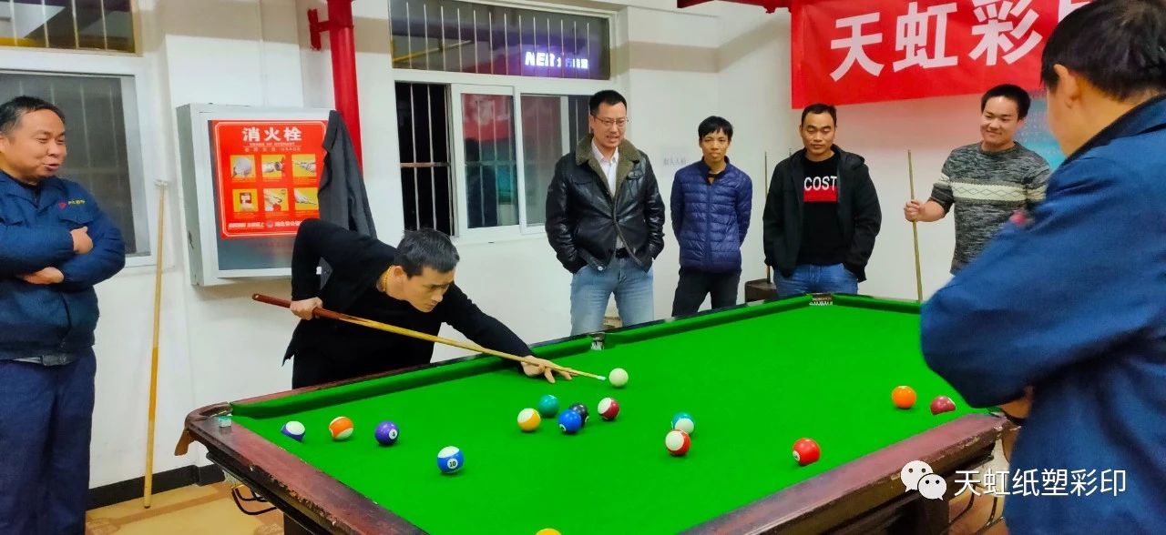 為豐富員工文化生活,培養(yǎng)員工競(jìng)技精神,2019年12月8日至12月20日,天虹彩印公司工會(huì)舉辦了第三屆臺(tái)球比賽,公司18名臺(tái)球愛好者積極勇躍報(bào)名參賽。